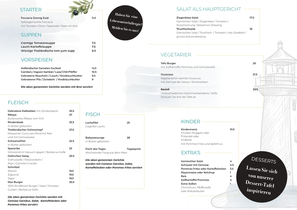 Wir heißen Sie herzlich willkommen in unserem Restaurant im Zentrum von Egmond aan Zee. Bei Zonnig Zuid können Sie die altmodische Gemütlichkeit genießen. Unser Restaurant liegt in der Nähe des Pomppleins. Von unserer Terrasse aus haben Sie einen wunderschönen Blick auf den Leuchtturm J.C.J. van Speijk.